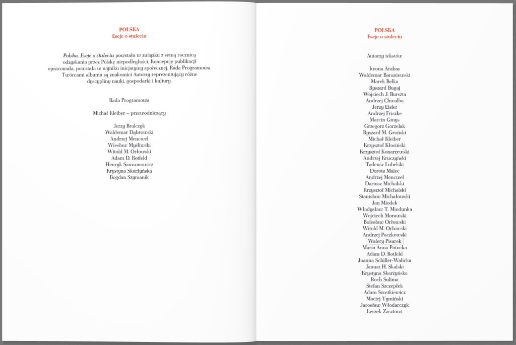 Pracami nad powstaniem ilustrowanego albumu oraz tej publikacji kieruje powołana z inicjatywy społecznej Rada Programowa, w skład której wchodzą m.in.: profesorowie Michał Kleiber, Andrzej Mencwel, Henryk Samsonowicz, Jerzy Bralczyk oraz wybitni znawcy polskiej kultury: pisarz Wiesław Myśliwski, dyrektor Teatru Wielkiego (Opery Narodowej) – Waldemar Dąbrowski, czy polski dyplomata, badacz stosunków międzynarodowych profesor Adam D. Rotfeld.