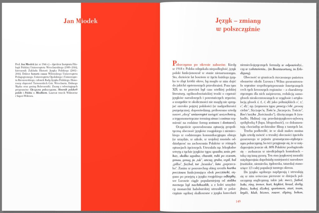 Autorzy podejmują rozważania na temat kształtowania się i rozwoju najważniejszych dziedzin życia narodu polskiego: skomplikowanej i trudnej historii Polski, jej suwerenności i transformacji dziejowej (przemian polityczno-gospodarczych), relacji i tożsamości społecznych, religii, oświaty, zdrowia, literatury i kultury, w tym: muzyki, filmu, sztuk pięknych i architektury. Nie zabraknie także omówienia rozwoju nauk technicznych czy przyrodniczo-medycznych.