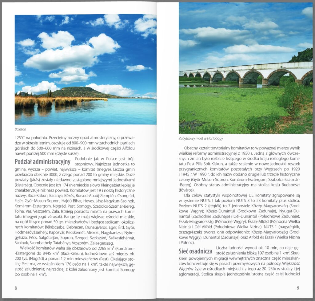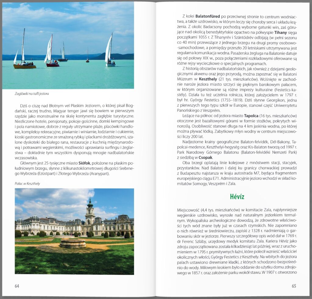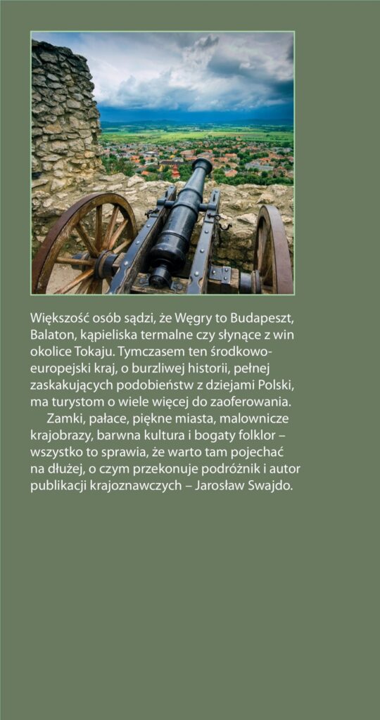 Większość osób sądzi, że Węgry to Budapeszt, Balaton i jeszcze ewentualnie kąpieliska termalne czy sławne z win okolice Tokaju. Tymczasem ten środkowoeuropejski kraj, o burzliwej historii, ma turystom o wiele więcej do zaoferowania. Liczne zabytki, piękne miasta, malownicze krajobrazy, zamki i pałace, sympatyczni mieszkańcy, barwna kultura i bogaty folklor – wszystko to sprawia, że warto tam pojechać na dłużej. Udowadnia to w swoim przewodniku Jarosław Swajdo, historyk, krajoznawca, publicysta. Autor przewodników turystycznych po Polsce i Europie. Węgry regularnie odwiedza od wielu lat, zauroczony zwłaszcza bezkresem Wielkiej Niziny.