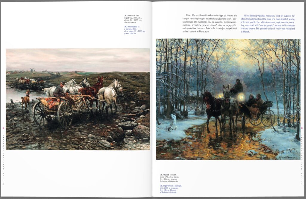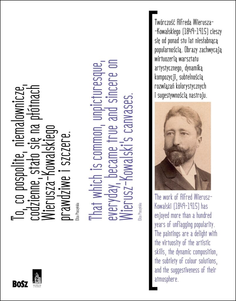 Alfred Wierusz-Kowalski (1849–1915) był czołowym przedstawicielem środowiska polskich artystów związanych z Monachium. Od czasu międzynarodowego debiutu na światowej wystawie w Wiedniu w 1873 roku do chwili obecnej cieszy się niesłabnącym zainteresowaniem miłośników malarstwa. Jego żywiołem były realistyczne, ale i idylliczne sceny z życia wiejskiego, z jego kulturą – nie pracy, lecz czasu wolnego. Sceny weselnych orszaków czy przejazdów zaprzęgów, nastrojowe powroty do domu lub dramatyczne napady wilków to najbardziej znane motywy jego obrazów. Mistrzostwo artysty kryje się w umiejętności oddania lirycznego klimatu schyłku dnia, przełamania pór roku, zatrzymania chwili radości lub zadumy, umiejętności oddania istoty przedstawianego świata małych polskich miasteczek i szlacheckich zaścianków oraz chwil z życia ich mieszkańców. Dzieła tego artysty cieszą się niesłabnącym zainteresowaniem i sprzedawane są w najlepszych galeriach sztuki w Europie.