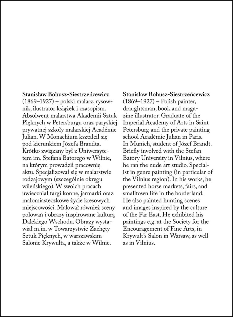 Stanisław Bohusz-Siestrzeńcewicz (1869–1927) – polski malarz, rysownik, ilustrator książek i czasopism. Absolwent malarstwa Akademii Sztuk Pięknych w Petersburgu oraz paryskiej prywatnej szkoły malarskiej Académie Julian. W Monachium kształcił się pod kierunkiem Józefa Brandta. Naukowo związany z Uniwersytetem im. Stefana Batorego, na którym wykładał malarstwo. Specjalizował się w malarstwie rodzajowym oraz pejzażowym (szczególnie okręgu wileńskiego). W swoich pracach uwieczniał: targi konne, jarmarki, małomiasteczkowe życie kresowych miejscowości. Chętnie malował również sceny polowań i obrazy inspirowane kulturą Dalekiego Wschodu. Jego prace wystawiano m.in. w Towarzystwie Zachęty Sztuk Pięknych, w warszawskim Salonie Krywulta, a także w Wilnie.