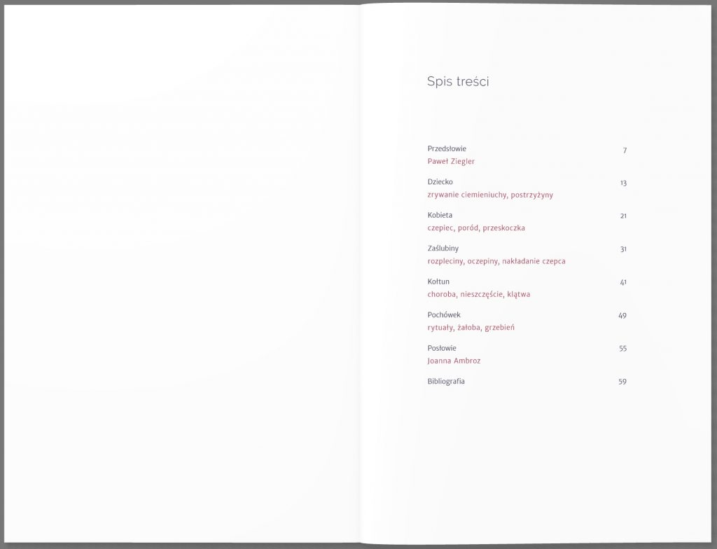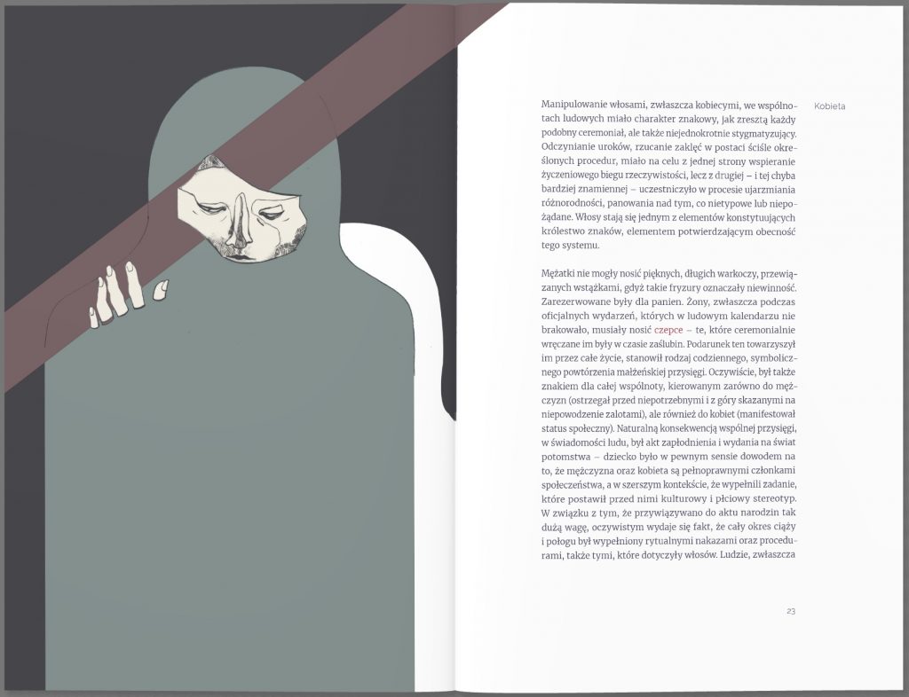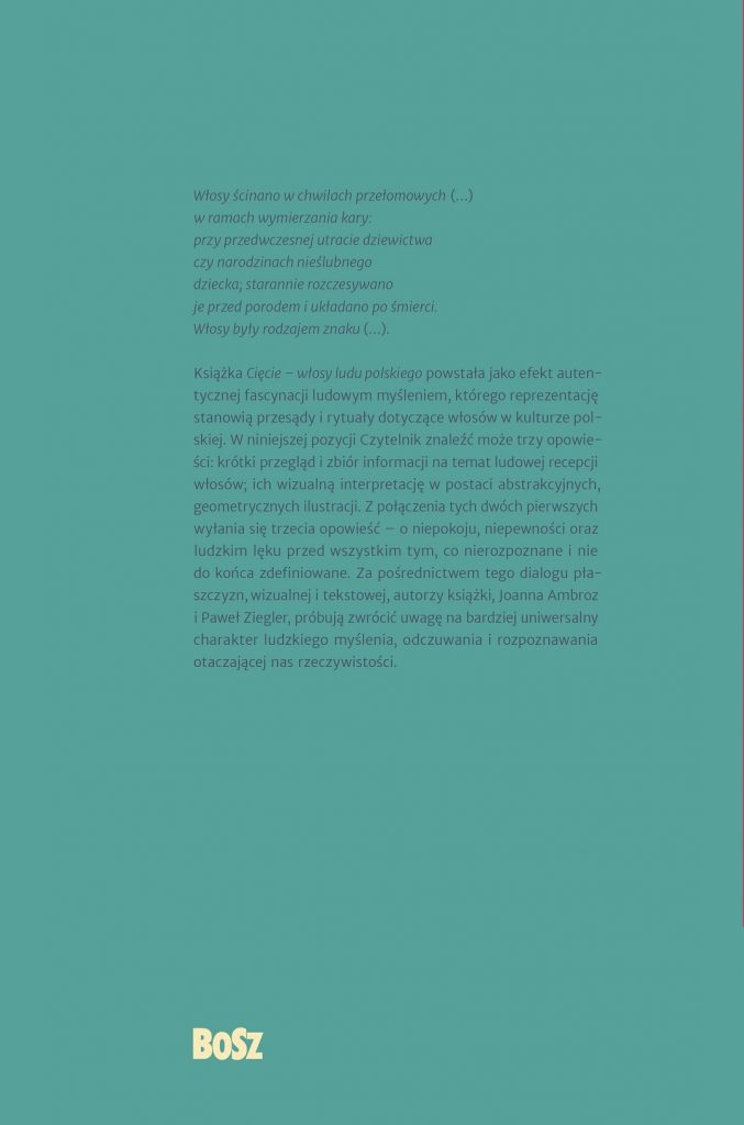Książka autorstwa Joanny Ambroz i Pawła Zieglera, pięknie ilustrowana, odwołująca się do przesądów, wierzeń oraz aspektów społecznych dotyczących włosów w kulturze polskiej, napisana na podstawie ksiąg z XIX i XX wieku. Ilustrację książki stanowią znakomite rysunki Joanny Ambroz o ograniczonym rysunku przedstawiającym postać ludzką, osadzoną w figurach geometrycznych, abstrakcyjnych. W ilustracjach zawarty jest klucz wizualny przedstawiający włosy.