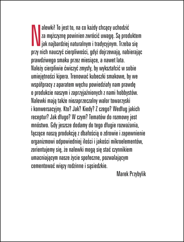 Tradycja wytwarzania nalewek i likierów praktykowana jest na ziemiach polskich od stuleci. „Domowe nalewki i likiery” to książka z przepisami, która zadowoli każdego konesera wykwintnych trunków produkowanych według starannie przestrzeganej, tradycyjnej receptury. Dzięki wykorzystaniu najlepszej jakości owoców i ziół, każda nalewka cechuje się charakterystycznym i niepowtarzalnym smakiem. Wszystkie przepisy przedstawione zostały w sposób jasny i przejrzysty, co umożliwia wykonanie trunków w domu. Ten praktyczny przewodnik oferuje 23 sprawdzone przepisy, dzięki którym z łatwością stworzysz w domu aromatyczne i naturalne trunki. Wydanie skupia się na wykorzystaniu naturalnych składników, aby nalewki były nie tylko smaczne, ale i wspierały zdrowie.