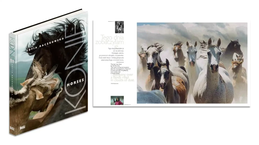 Album Konie jest pierwszą tak obszerną i kompleksową retrospektywą twórczości Zofii Raczkowskiej, artystki fotografika zaliczanej do światowej czołówki: od jej wieloletniej, najbardziej znanej pasji – koni arabskich – po wyprawy w dzikie obszary skandynawskie, gdzie fotografowała konie norweskie. Te dwa wielkie etapy życia i pracy Zofii Raczkowskiej tworzą zasadniczą ramę konstrukcyjną projektu graficznego albumu, prezentującego nie tylko ukochane zwierzęta autorki, ale też urzekające krajobrazy i bogactwo flory Polski oraz Skandynawii.