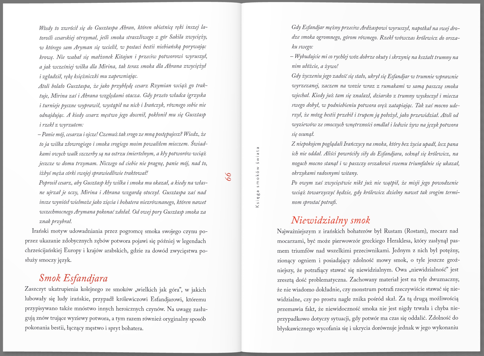 Stworzona przez Bartłomieja Grzegorza Salę „Księga smoków świata” zabiera czytelników w fascynujący i różnorodny świat smoków i smokopodobnych potworów. Autor, historyk i etnolog, kreśli szczegółowo wizerunki całych rzesz smoczych bestii obecnych w wyobrażeniach wszystkich kręgów kulturowych, omawia ich charakterystyczne cechy oraz przytacza poświęcone im opowieści – mity, legendy i podania.
