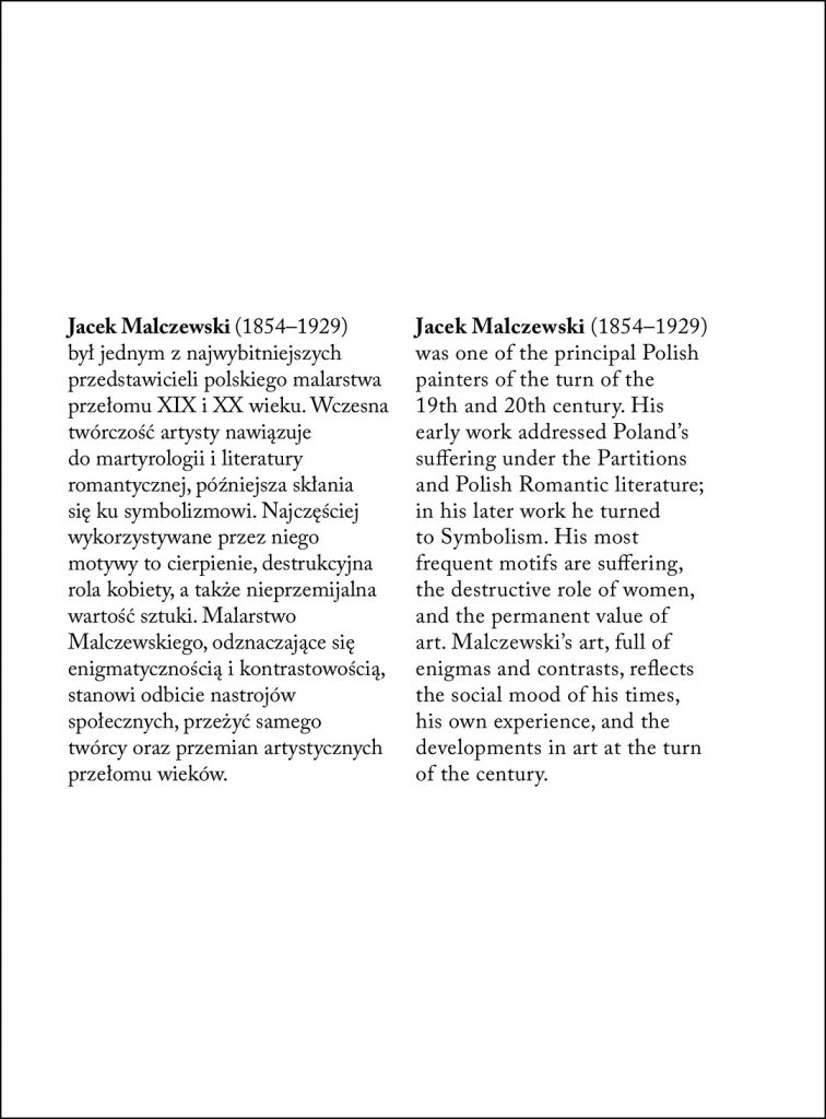 Jacek Malczewski to jeden z najwybitniejszych twórców w dziejach malarstwa polskiego, którego dzieła cieszą się także szczególnym zainteresowaniem publiczności i badaczy spoza Polski. Jego twórczość stanowi trzon wszystkich prezentacji sztuki polskiej okresu modernizmu, a jednocześnie pojawia się na wystawach ukazujących sztukę europejską przełomu XIX i XX wieku.