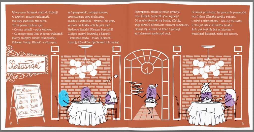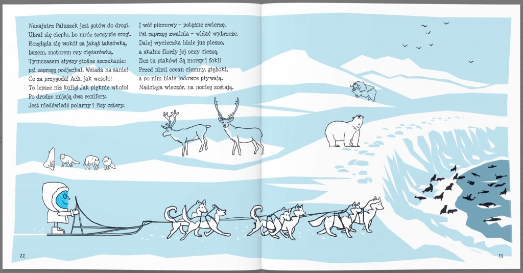 Kinga Grabowska-Bednarz, autorka „Much” i „Pana Paluszka” po raz kolejny zaprasza wszystkich – i tych małych, i tych dużych w świat zabawnych, wierszowanych przygód Pana Paluszka. Spragniony wrażeń chłopiec wybiera się w kolejną fascynującą podróż po świecie, odwiedzając ciekawe miejsca, m.in.: Grenlandię, Finlandię, Holandię… Odkrywa niesamowite zjawiska i poznaje nieznane mu dotychczas zwyczaje innych kultur. To niezwykle pouczająca, a przy tym lekka i bardzo zabawna lektura.