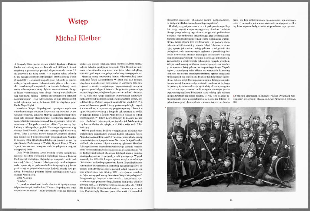 „Polska 100 lat” to bogato ilustrowany album przygotowywany w związku z przypadającą w 2018 roku setną rocznicą odzyskania przez Polskę niepodległości. Pracami nad powstaniem tej wyjątkowej publikacji kieruje powołana z inicjatywy społecznej Rada Programowa, w skład której wchodzą m.in.: profesorowie M. Kleiber, A. Mencwel, H. Samsonowicz, J. Bralczyk oraz wybitni znawcy polskiej kultury: pisarz W. Myśliwski, dyrektor Teatru Wielkiego – Opery Narodowej – W. Dąbrowski, czy polski dyplomata, badacz stosunków międzynarodowych prof. A. Rotfeld.