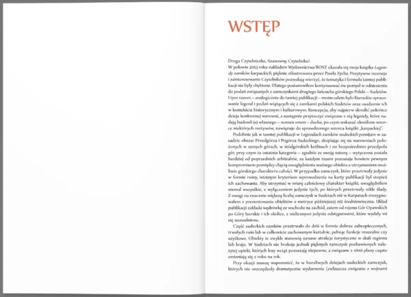 Publikacja poświęcona jest warowniom wyrosłych przed wiekami w głębi gór, w śródgórskich kotlinach lub w najbliższej okolicy sudeckich wierchów; obiektów do dziś zachowujących swój blask, jak i pozostających w ruinie. Autor przedstawia pokrótce dzieje każdego zamku, a następnie związane z nim legendy. Na nowo ożywają duchy i zjawy, święci i diabły, okrutni panowie i dzielni junacy, namiętni kochankowie i bezwzględni zbójcy.