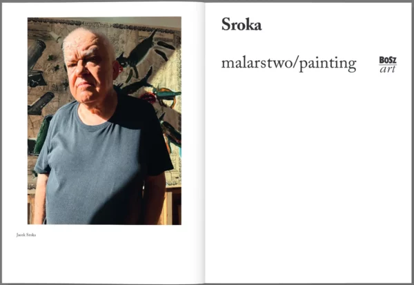 Tomik w serii „Malarstwo”, w który prezentuje obrazy krakowskiego artysty Jacka Sroki. Artysta zajmuje się równocześnie malarstwem i grafiką warsztatową, a jego sztukę można zaliczyć do neoekspresjonizmu. Sroka przed stworzeniem obrazu zawsze najpierw zapisuje swoje pomysły w szkicowniku, „planuje” dzieło oraz wyznacza sobie konkretny cel. W trakcie pracy twórczej ten chłodny zamysł zostaje uzupełniony o niemożliwy do przewidzenia element niespodzianki, który sam artysta nazywa „białą magią”. W jego twórczości odnaleźć można karykaturę, groteskowość oraz ambiwalencje, kiedy np. opowiada o rzeczach ponurych i niemiłych w sposób wyrafinowany i nacechowany pięknem. Jacek Sroka jest laureatem wielu nagród, a jego prace można oglądać w muzeach na całym świecie. W 2022 roku został czynnym członkiem Polskiej Akademii Umiejętności.