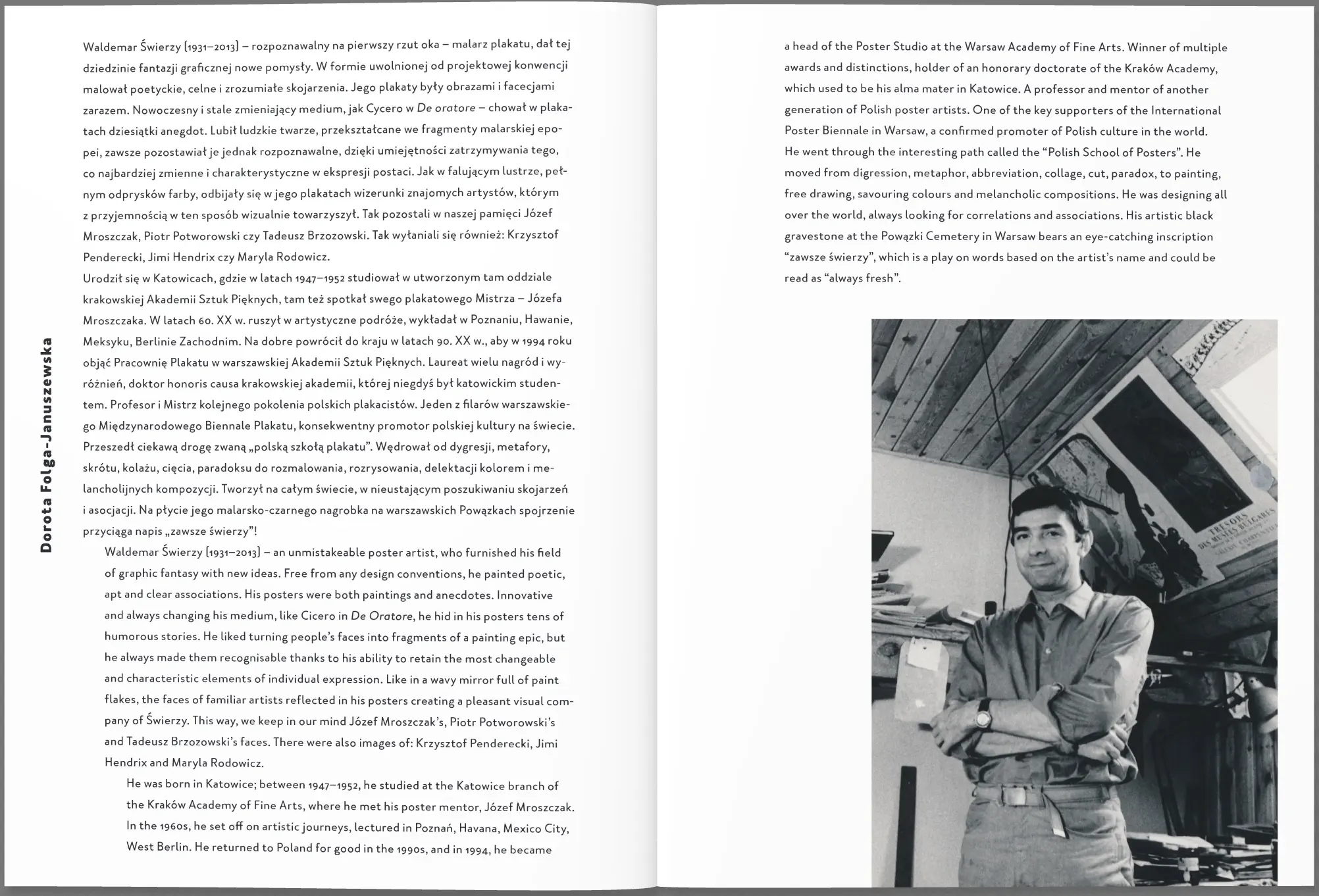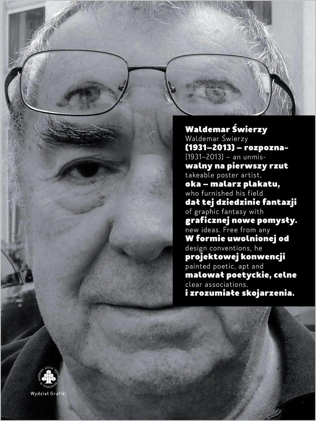 Książka traktuje o twórczości jednego z największych polskich plakacistów, Waldemara Świerzego. Uznany za najwybitniejszego portrecistę wśród grafików, specjalizował się zwłaszcza w plakacie filmowym – do jego najsłynniejszych dzieł zaliczają się „Bulwar zachodzącego słońca”, „Nocny kowboj” czy „Milczenie”. Świerzy tworzył również plakaty cyrkowe, które w humorystyczny sposób pokazują klaunów i akrobatów, oraz plakaty muzyczne, przedstawiające m.in. wielkie sławy jazzu: Milesa Davisa, Raya Charlesa czy Charliego Parkera. Na kunszt artystyczny tego wybitnego twórcy składają się bogata kolorystyka, ekspresyjność i abstrakcyjność oraz wyszukana forma.