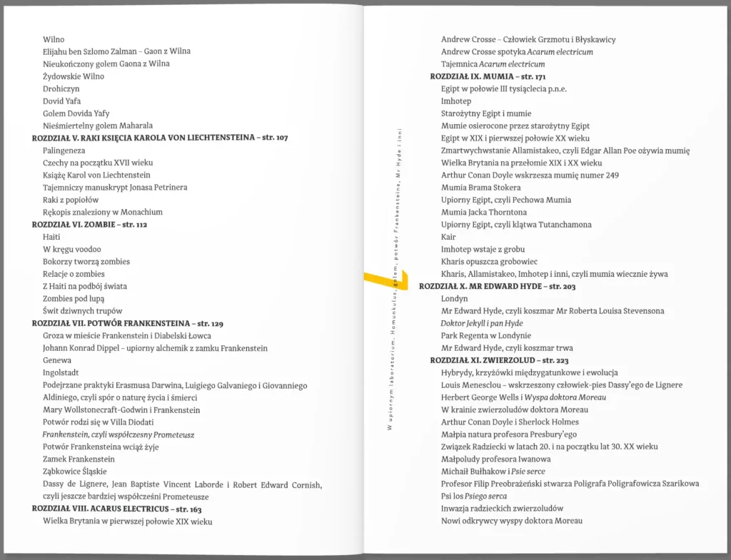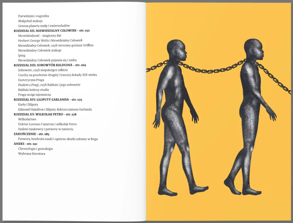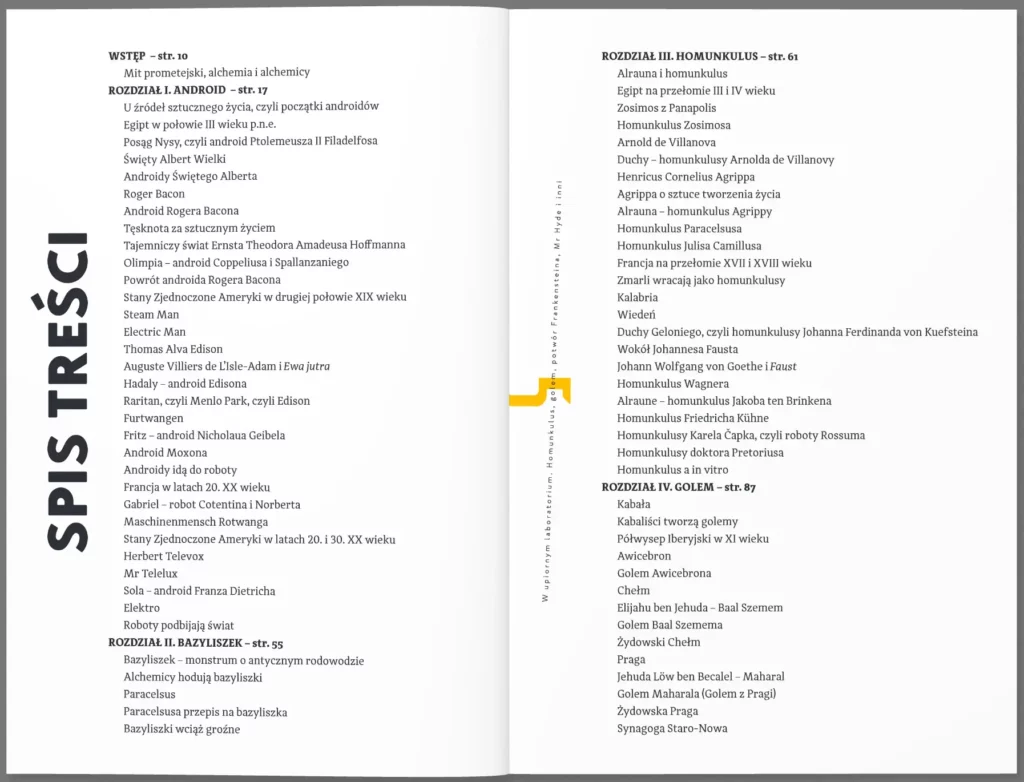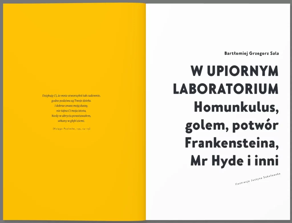 Trzecia, ostania, część „czarnej trylogii” autorstwa Bartłomieja G. Sali. Książka stanowi rodzaj pocztu istot, jakie wedle zapisków alchemików, źródeł historycznych, obiegowych opinii oraz klasyki literatury i kina miały zostać stworzone przez człowieka na drodze praktyk magicznych, alchemicznych doświadczeń czy eksperymentów naukowych. Istot, które w mniejszym lub większym stopniu wpisywały się w mit prometejski. Obok jednak stworzeń powstałych przez intencjonalne działanie człowieka, znalazły się tutaj również takie, którym dał on życie zupełnie niechcący, na przykład bez zrozumienia szepcząc magiczną formułę lub uruchamiając inny ciąg przyczynowo-skutkowy. W ten sposób życie tchnięte być miało między innymi w budzące się z wiekuistego snu mumie egipskie. Nie zabrakło w książce także miejsca dla istot, którym człowiek nie tyle dał życie, ile nową jego formę. W ten sposób narodzić się mieli między innymi szpetny Mr Edward Hyde czy Niewidzialny Człowiek. Każdy rozdział poświęcony został innej postaci lub ich grupie. Kolejność rozdziałów odpowiada chronologii pojawiania się owych postaci w kulturze, choć dalej już opowiadane w każdym z nich historie toczą się równolegle.