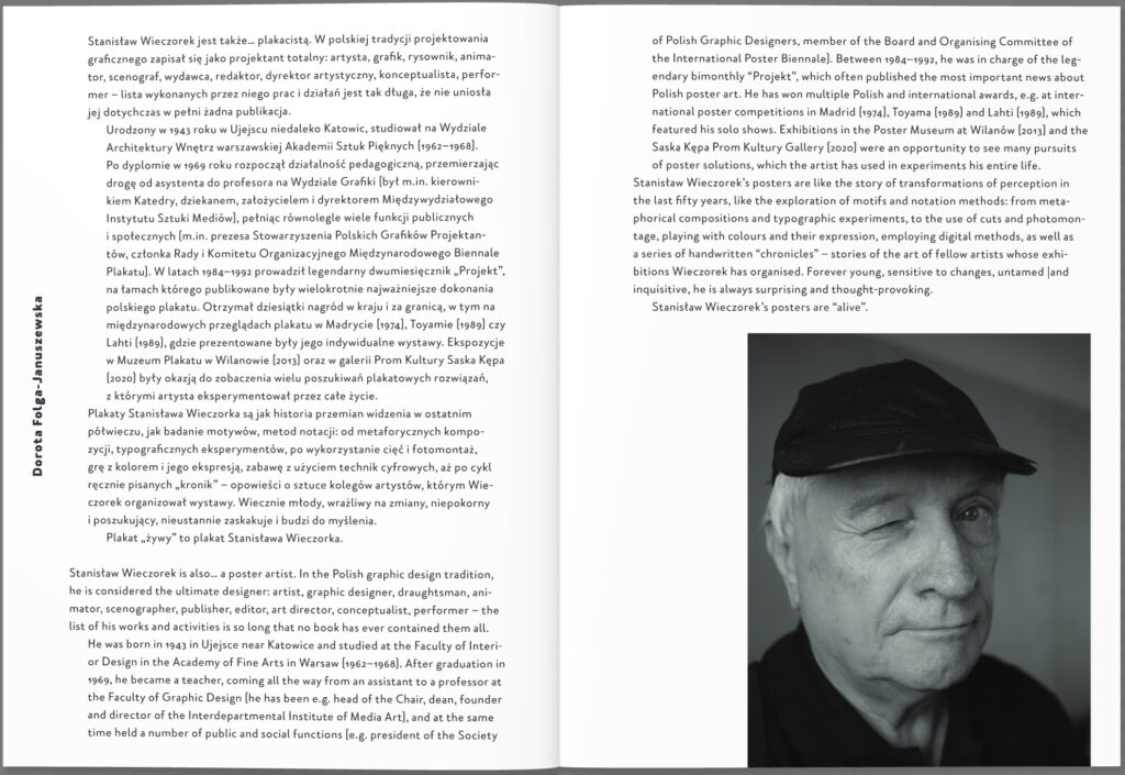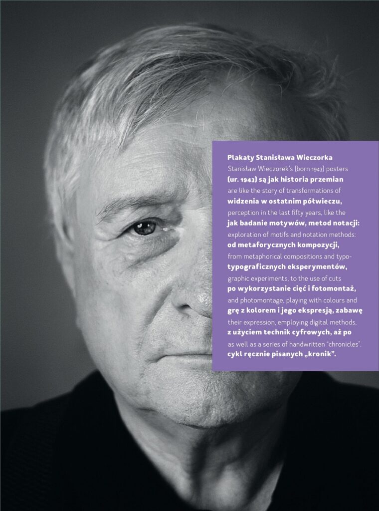 Kolejny minialbum popularnej serii Plakaty, współtworzonej z Akademią Sztuk Pięknych, poświęcony został osobie Stanisława Wieczorka (ur. 1943 r.) – wszechstronnego artysty: malarza, rysownika, grafika, scenografa i projektanta. Od początku swojej pracy twórczej związany jest z warszawskim oddziałem wspomnianej ASP, gdzie wielokrotnie pełnił funkcję prodziekana i dziekana Wydziału Grafiki. Był także kierownikiem artystycznym w Wydawnictwach Artystyczno-Graficznych (1969–1975) i dyrektorem artystycznym dwumiesięcznika „Projekt” (1984–1992). Wielokrotnie doceniany i wyróżniany, m.in. nagrodą Ministra Kultury i Sztuki oraz Honorową Odznaką „Zasłużony dla Kultury Polskiej”, prezentował swoje prace na licznych wystawach zarówno w Polsce, jak i za granicą.