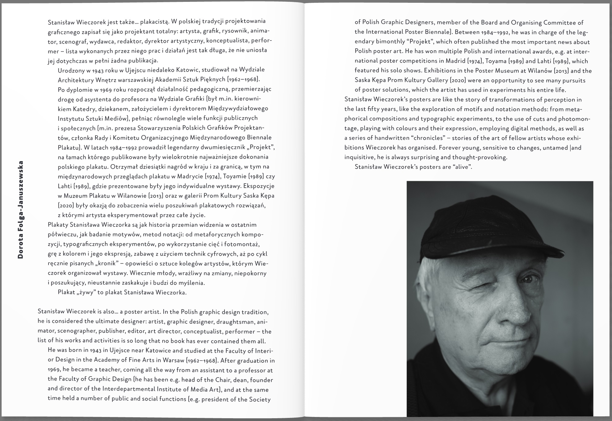 Kolejny minialbum popularnej serii Plakaty, współtworzonej z Akademią Sztuk Pięknych, poświęcony został osobie Stanisława Wieczorka (ur. 1943 r.) – wszechstronnego artysty: malarza, rysownika, grafika, scenografa i projektanta. Od początku swojej pracy twórczej związany jest z warszawskim oddziałem wspomnianej ASP, gdzie wielokrotnie pełnił funkcję prodziekana i dziekana Wydziału Grafiki. Był także kierownikiem artystycznym w Wydawnictwach Artystyczno-Graficznych (1969–1975) i dyrektorem artystycznym dwumiesięcznika „Projekt” (1984–1992). Wielokrotnie doceniany i wyróżniany, m.in. nagrodą Ministra Kultury i Sztuki oraz Honorową Odznaką „Zasłużony dla Kultury Polskiej”, prezentował swoje prace na licznych wystawach zarówno w Polsce, jak i za granicą.