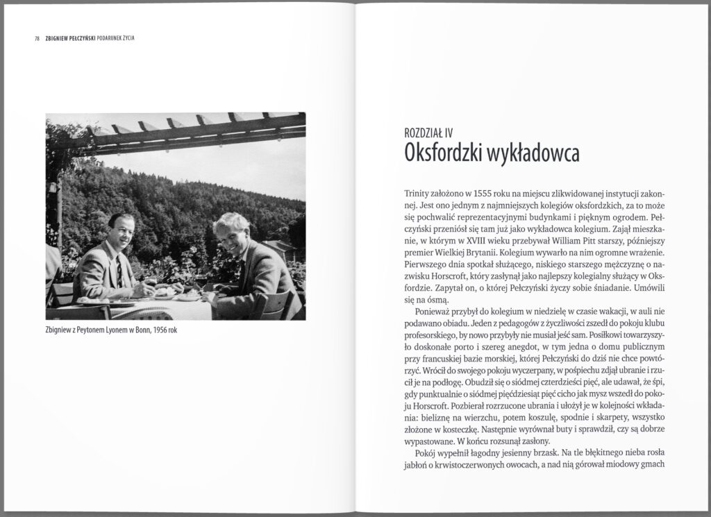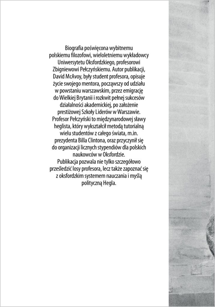 Zbigniew Pełczyński. Podarunek życia to składająca się z jedenastu rozdziałów książka biograficzna poświęcona wybitnemu polskiemu filozofowi, wieloletniemu wykładowcy Uniwersytetu Oksfordzkiego, profesorowi Zbigniewowi Pełczyńskiemu. Autor publikacji, David McAvoy, były student prof. Pełczyńskiego, opisuje życie swojego mentora, począwszy od jego młodości przypadającej na okres II wojny światowej, związanej z udziałem w powstaniu warszawskim, aż po emigrację do Wielkiej Brytanii i rozkwit niezwykłe bogatej, pełnej sukcesów działalności akademickiej profesora. Książkę uzupełnia kilkadziesiąt zdjęć pochodzących m.in. z archiwum rodzinnego.