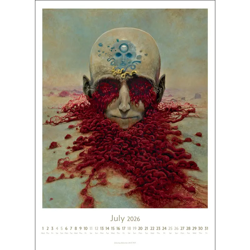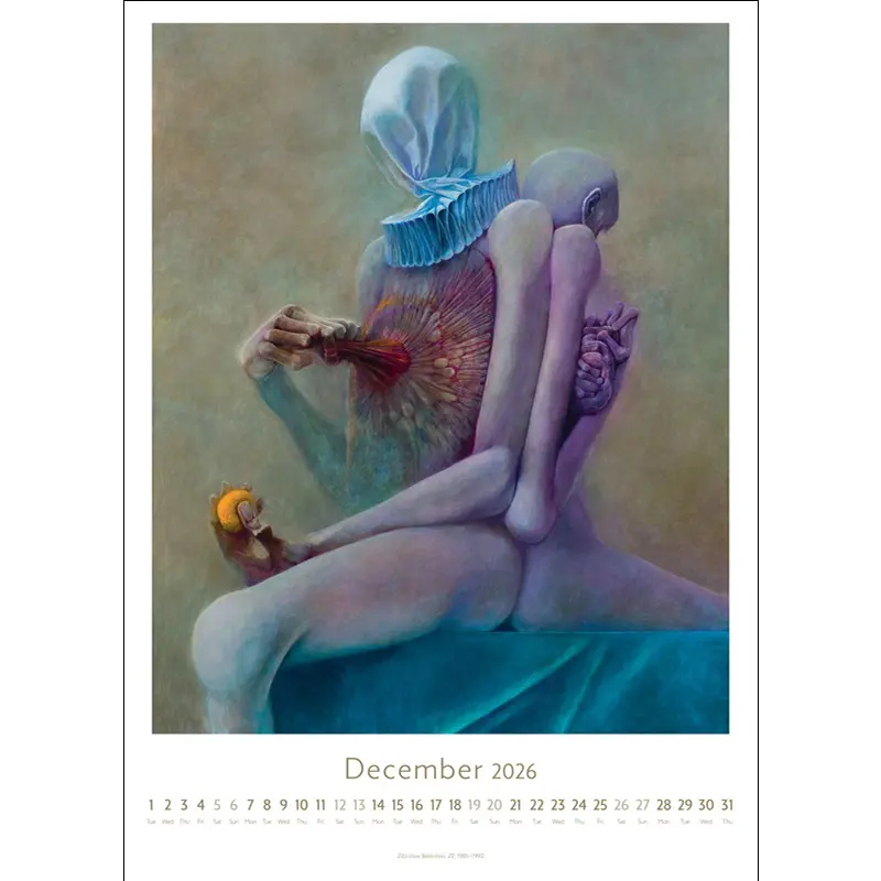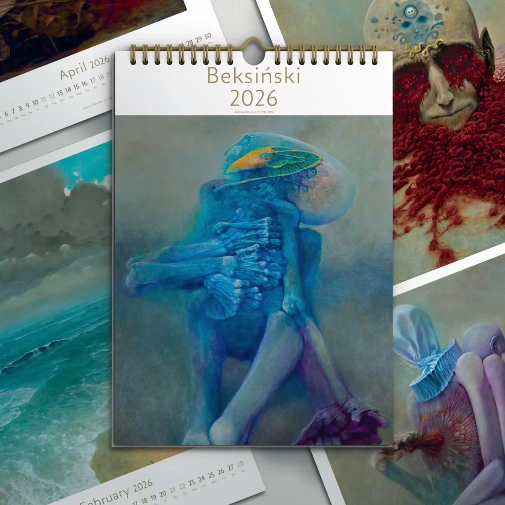 Wyjątkowy, wielkoformatowy kalendarz na rok 2026, który zabierze Was w podróż do fascynującego świata Zdzisława Beksińskiego, prezentując niezwykłe obrazy pochodzące z tzw. kolekcji japońskiej.
